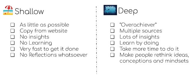 Combining a Shallow and Deep mindset is how we learn and if we keep repeating is how we will keep improving and keep raising the bar.